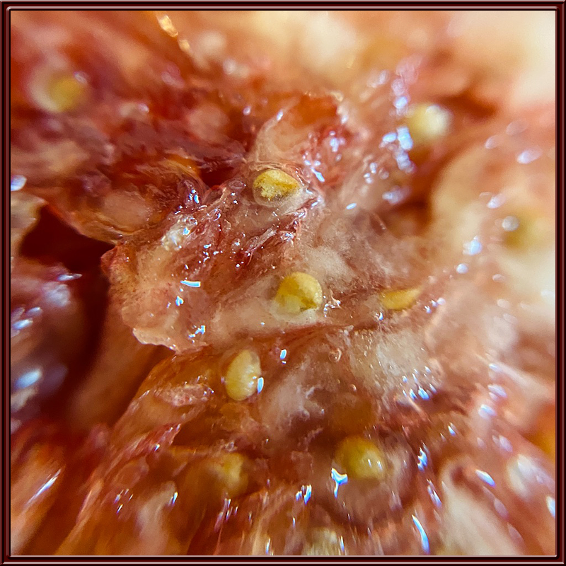 台風で猛暑、外へはなかなかですが、撮ってくださったのはなんとイチジク、素材は家の中にありました。もう一枚の恐竜かと見紛うマクロレンズ写真も楽しすぎです、そしてオクラの種も載せたいくらいに可愛いのでぜひ本文で!
