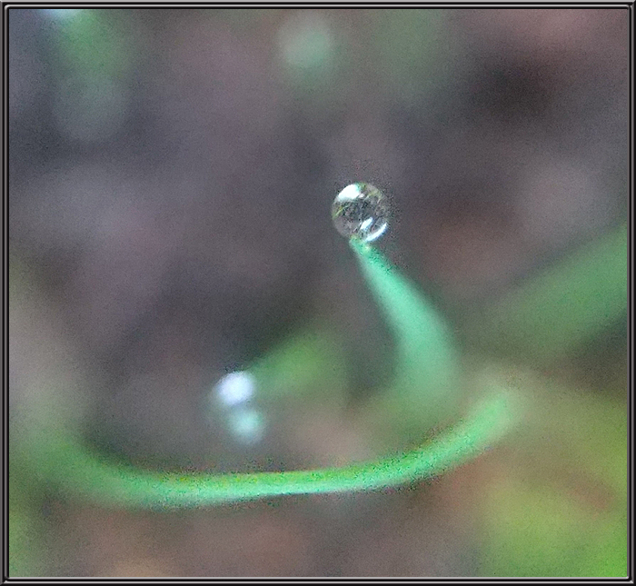 2つ目の朝霧のマクロレンズ写真。 雨より全体に細かく付くそうですが見たことないです。素晴らしい写真がいっぱいですが、私はモウセンゴケの雨粒も楽しくて好きです。その形も面白いのでぜひブログでご覧ください。(笑)