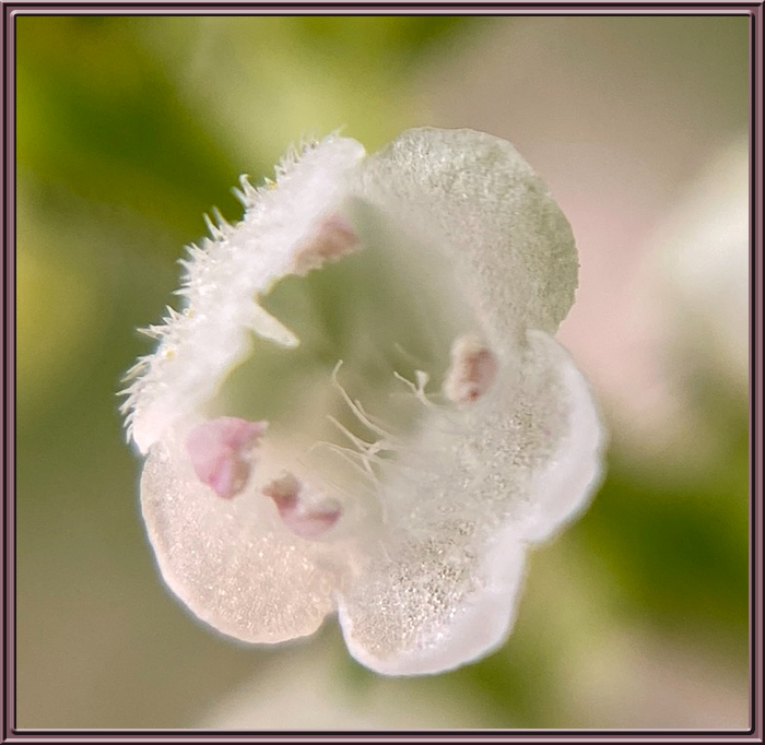 temahimeさん宅のベランダでは、お料理の上手な方らしく料理に彩りや風味を添えてくれるものを育てておられます、その中の青じそに花が咲きました。お刺身に添えるあの穂紫蘇の小さな花はこんなにも優しく可愛い花だったのですね。